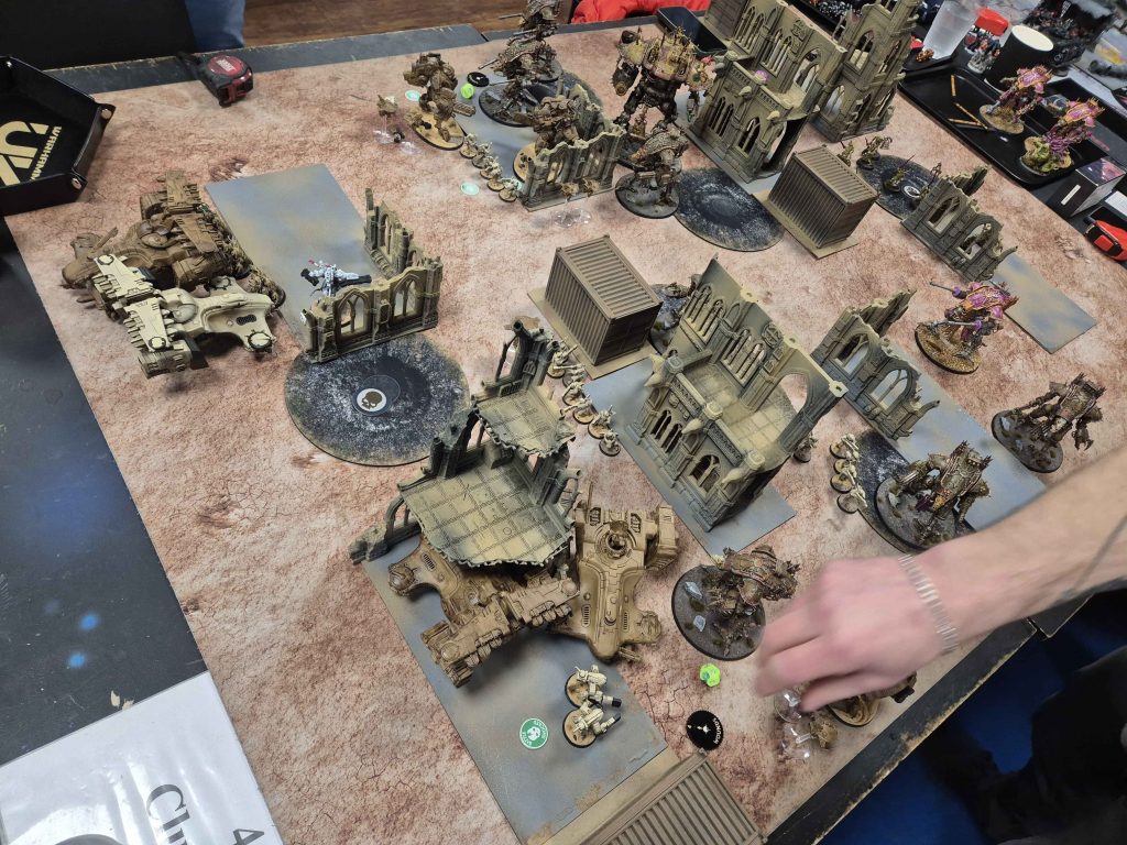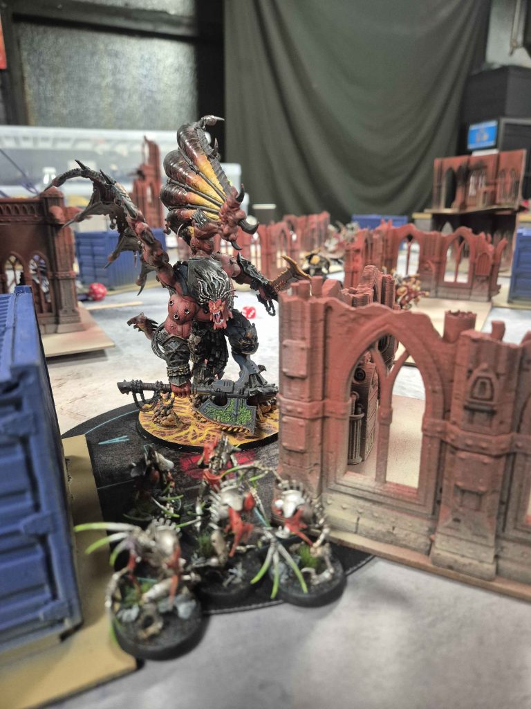 - Jamie’s Tyranids stalked Toby’s Chaos Knights — proving that even when biomass is scarce, starving Tyranids are still deadly.