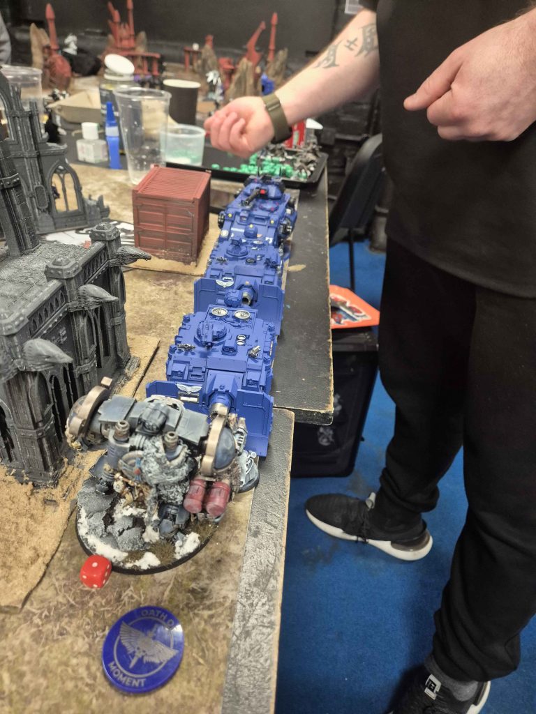 Although one planned league pairing had to be rearranged, Robert stepped in with his Ultramarines to face Lewis’ Votann, taking the fight forward in the Emperor’s name.